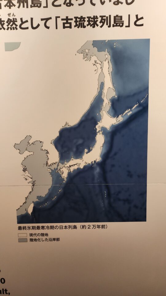 サキ:人類が日本列島に来たのは氷河期の4万年前だね。氷河で北半球が覆われている寒さで海面が低下して、なんと瀬戸内海は陸地で、北海道を除く、本州、四国、九州が一つの島(古本州島)だったってことにビックリしたわ。