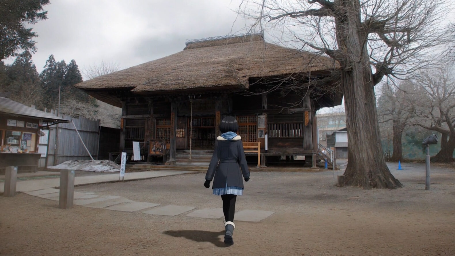 サキ:「……なんだろう、このお寺の前に立ったら急に、足が重くなった」
