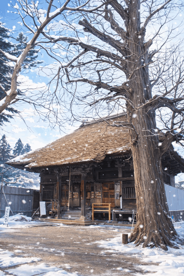 【初春の会津坂下町 恵隆寺えりゅうじの門前】