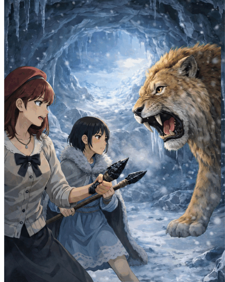 サキ:「覚えてる? 去年、私たちが一緒に行った上野の『氷河期展』。あそこで見た、氷河期の人類が命がけで戦った最大の強敵……ホラアナライオンのこと!」