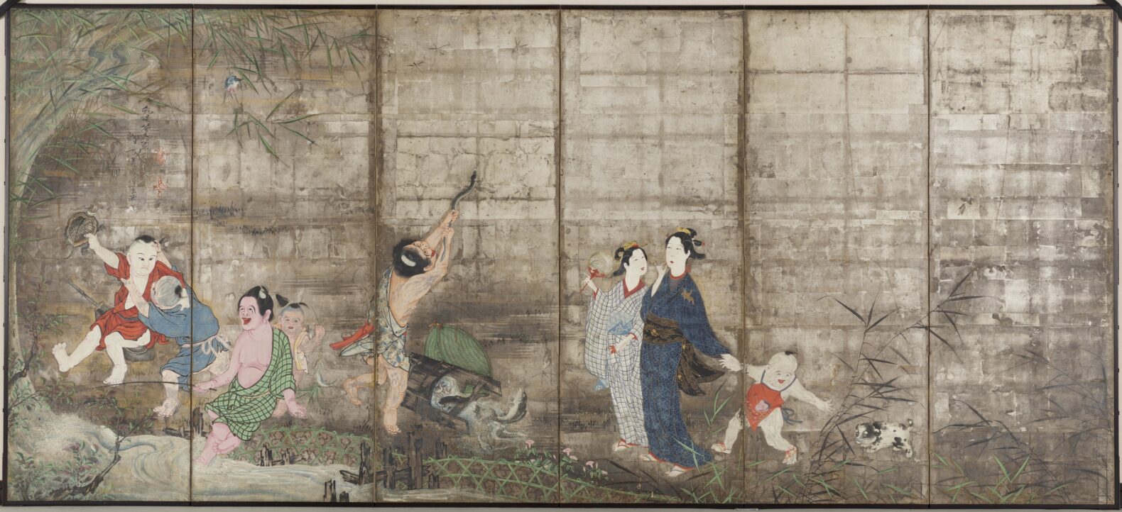 重要文化財 紙本著色群仙図 曽我蕭白筆/三十五歳の款記がある/六曲屏風 九州国立博物館蔵 (画像はColBaseより)
